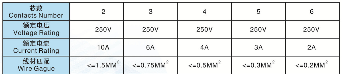 芯數(Contacts  Number):   2 - 6芯