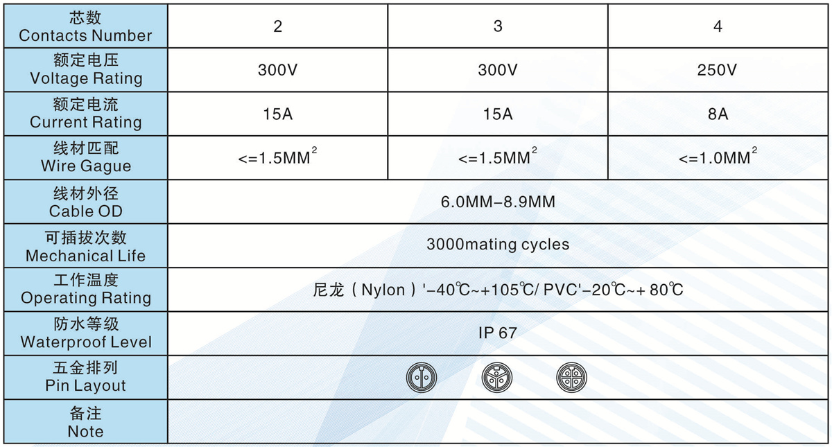 芯數(shù)(Contacts Number) : 2芯 3芯 4芯