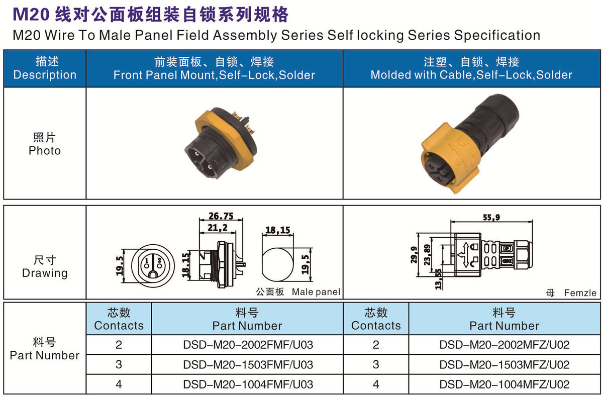 M20 線對公面板 組裝自鎖 系列