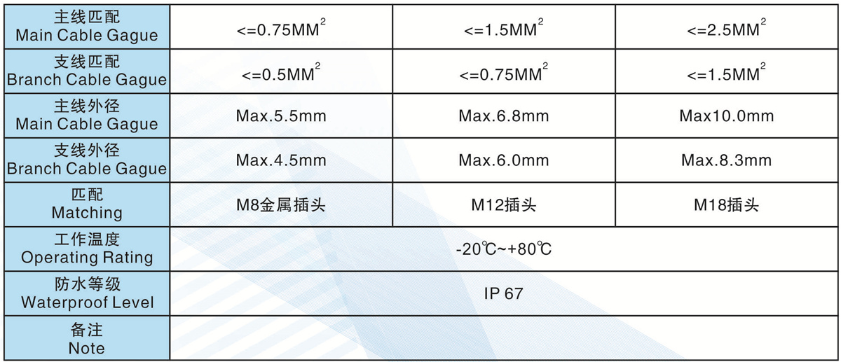 支線外徑(Branch Cable Gague):Max.6.0mm